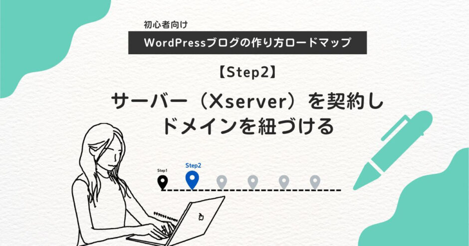 初心者向けにWordPressブログの立ち上げ方を「6つのステップ」で順番に解説していくロードマップ記事です。この記事は、前回の「Step1. お名前.comでドメインを取得する」に続く、Step2|サーバー(Xserver)を契約しドメインを紐づける の解説パートになります。